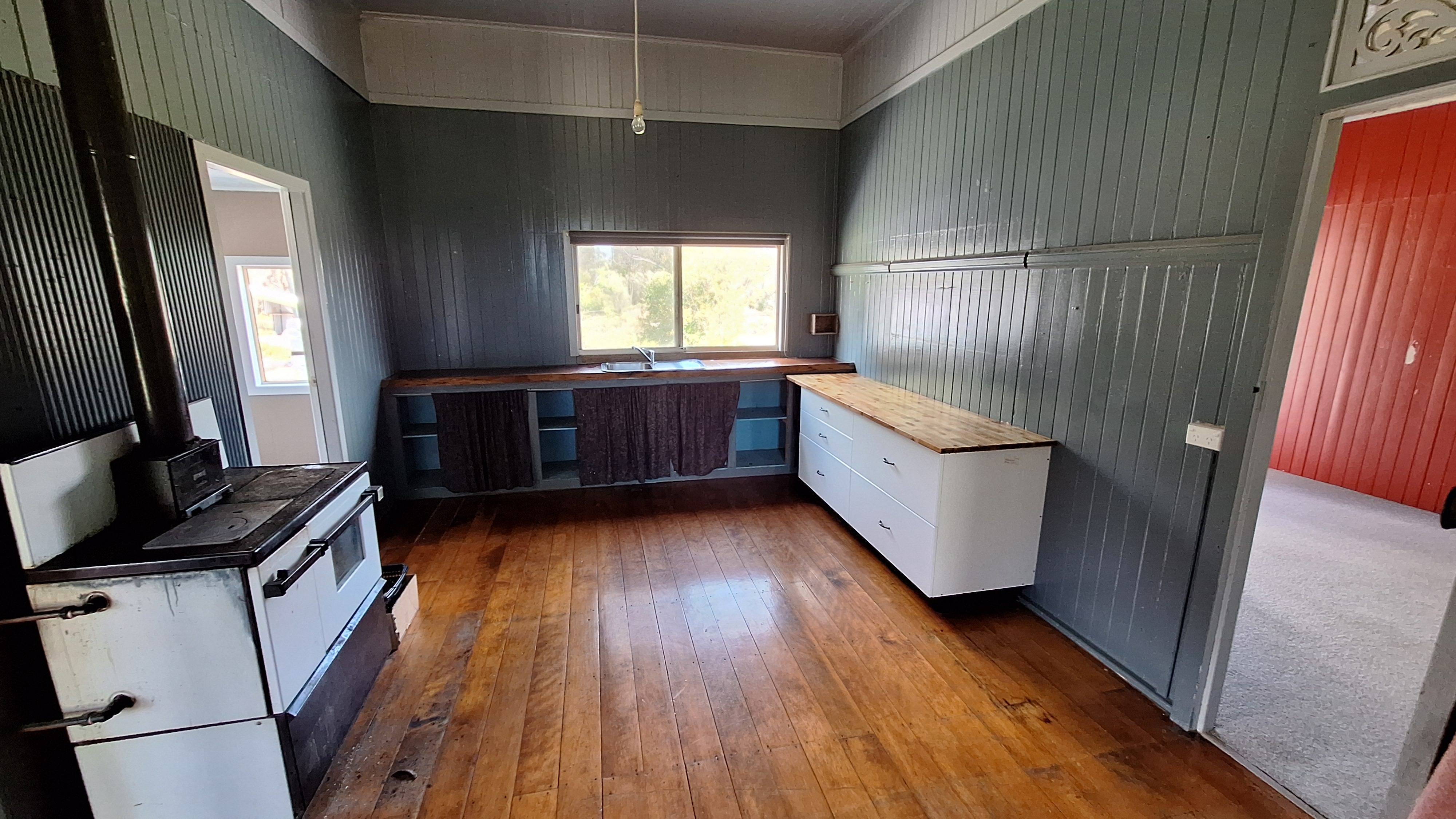 Solid timber home with external colorbond sheeting, high ceilings and internal VJ boards. Good sized kitchen with wood stove and good bench space, dining room and separate lounge room with wood fired heating. 3 bedrooms are generously sized and the home has an open verandah on North and Eastern sides.