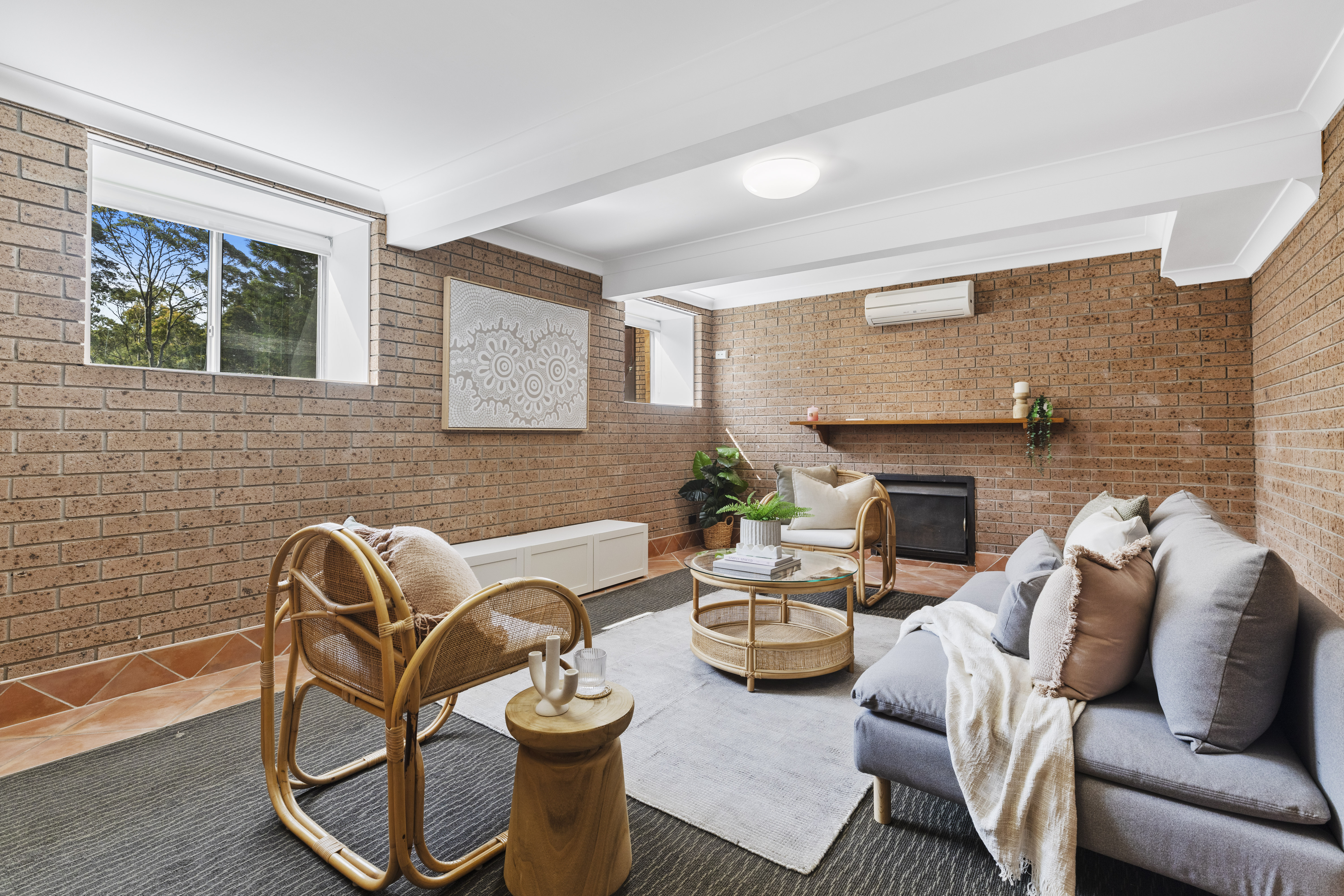 Air-conditioned rumpus with winter fire on ground floor (or could be fourth bedroom)