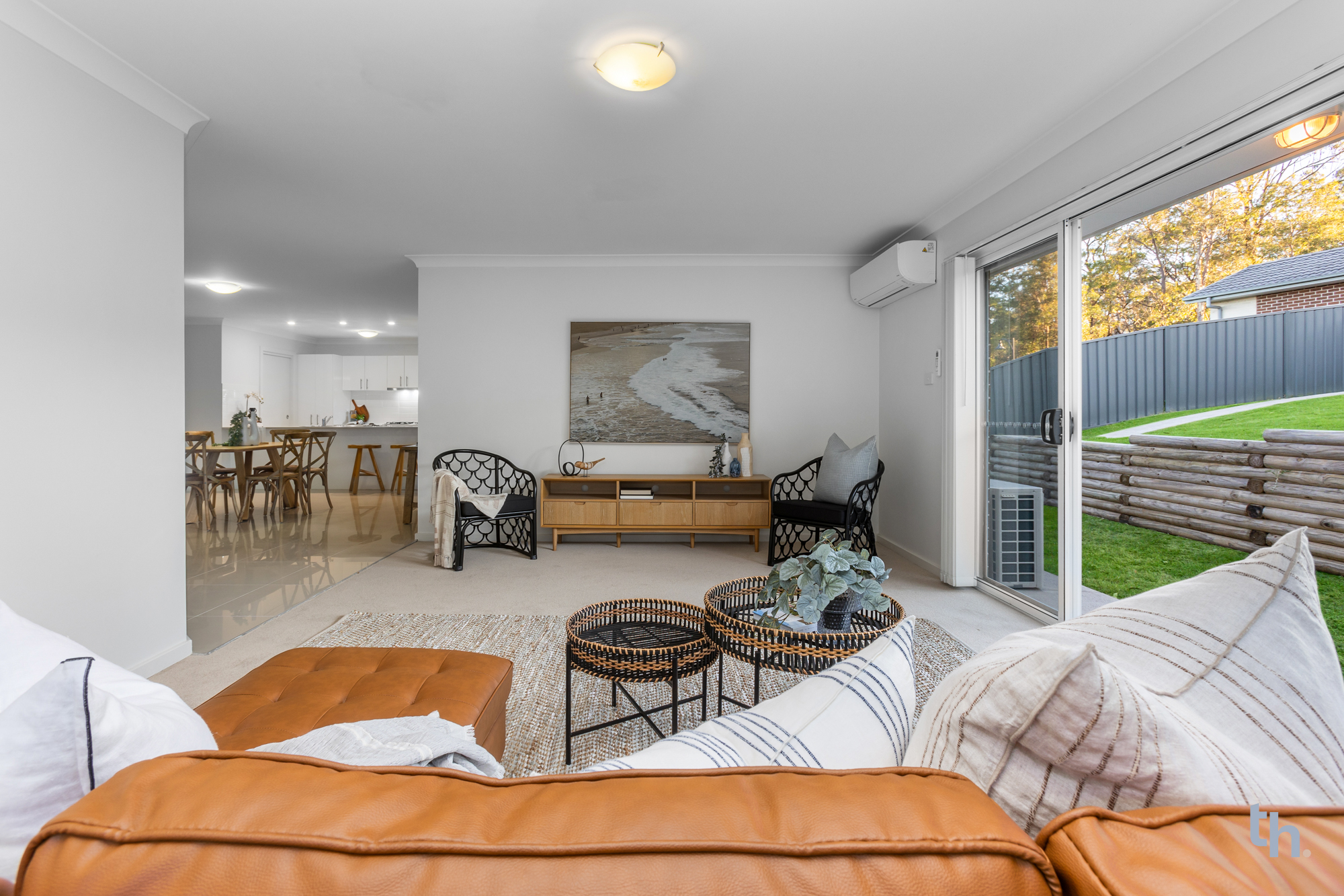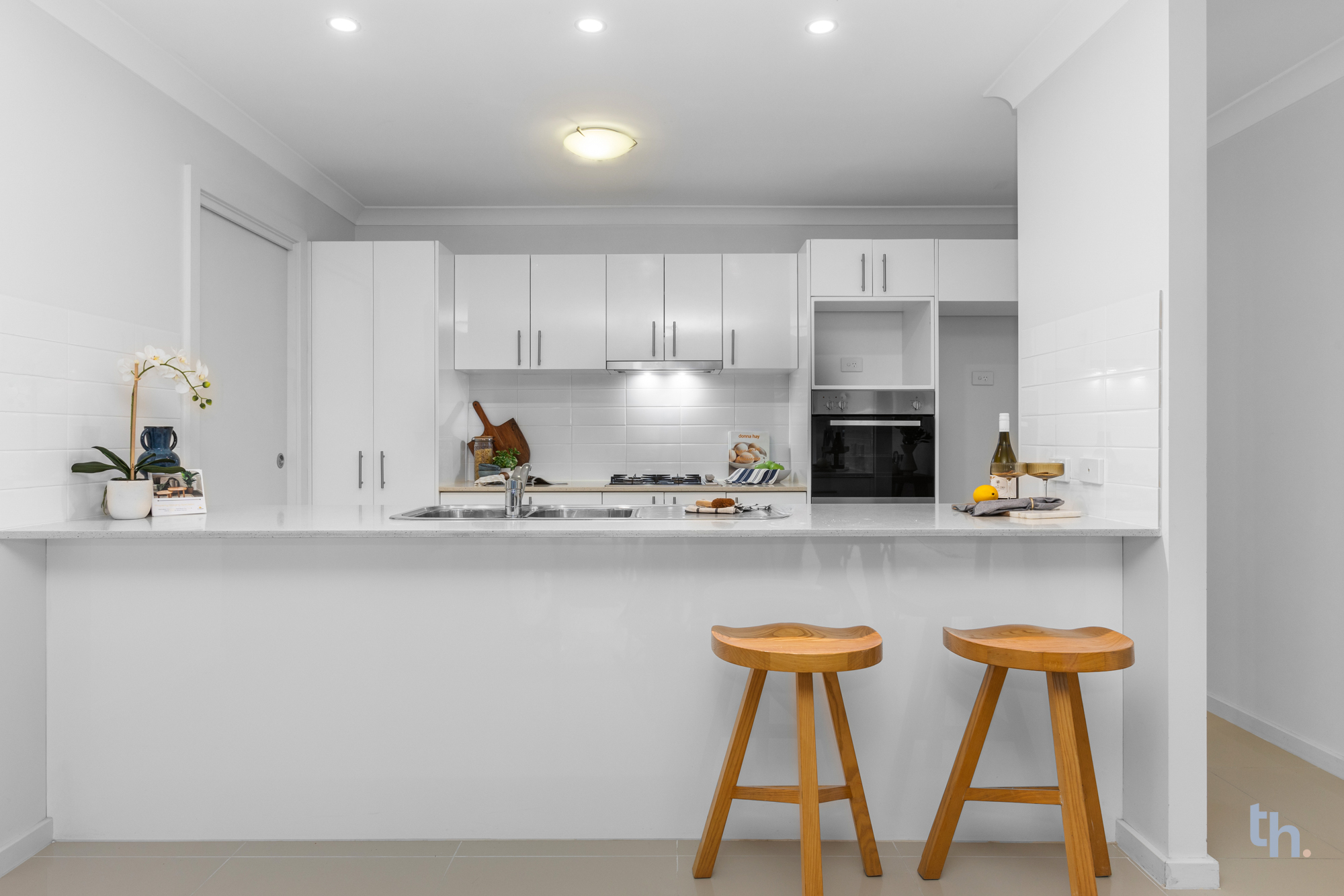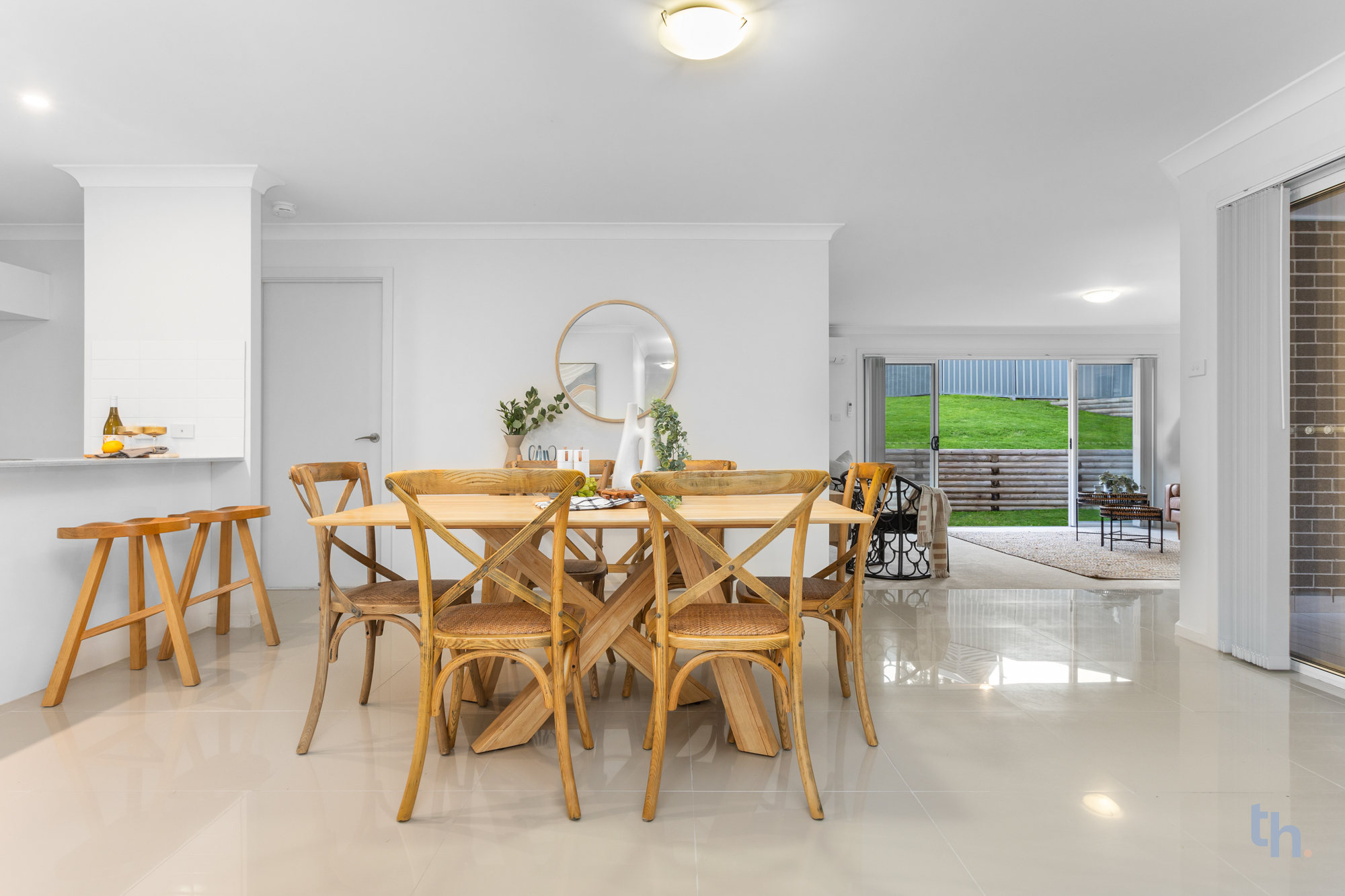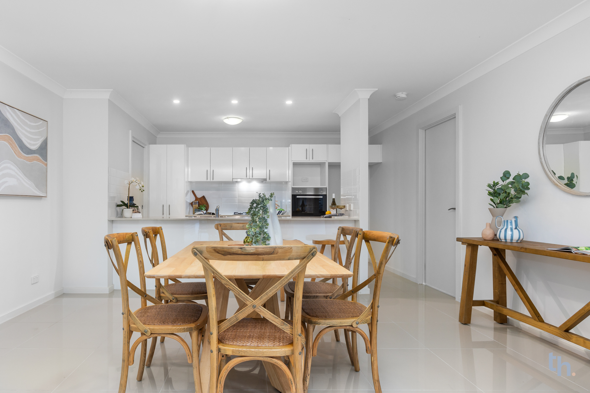 - Open plan living is grounded by hard wearing and high gloss floor tiles