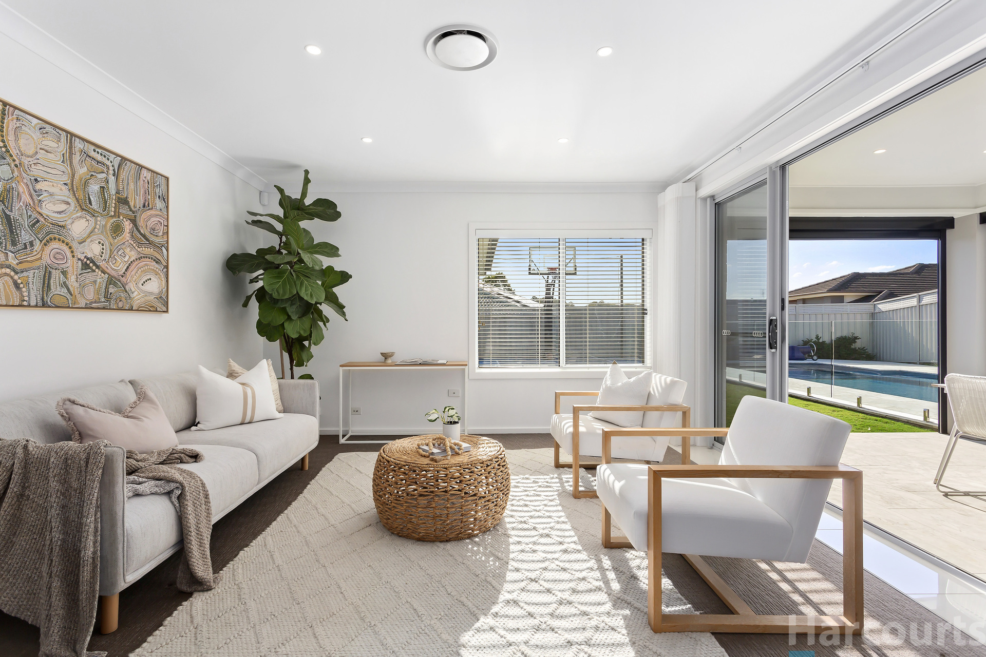 - Contemporary single level family home on 660sqm parcel - Choice of living spaces with open plan lounge and dining and separate media room - Covered north facing alfresco entertaining area with automatic roller blinds - Caesarstone island kitchen with gas cooktop, dishwasher and walk-in pantry - Master bedroom with walk-in robe and ensuite with double vanity - 3 additional bedrooms with built in robes and custom cabinetry - New black-edged shower screens in bathrooms - Oversized double garage with handy third bathroom; large laundry - Secure back yard, 8.2m Compass Mineral Pool with self-cleaning functions, and a 'Dream Courts' basketball court - 13.2kw system with a 10kw solar edge backup battery - Complete home filtration system (all house water is filtered) - Ducted air-conditioning and a security system keeps the home comfortable and safe - 11.5km – Newcastle CBD, 7.5km – M1 and Hunter Expressway on ramps