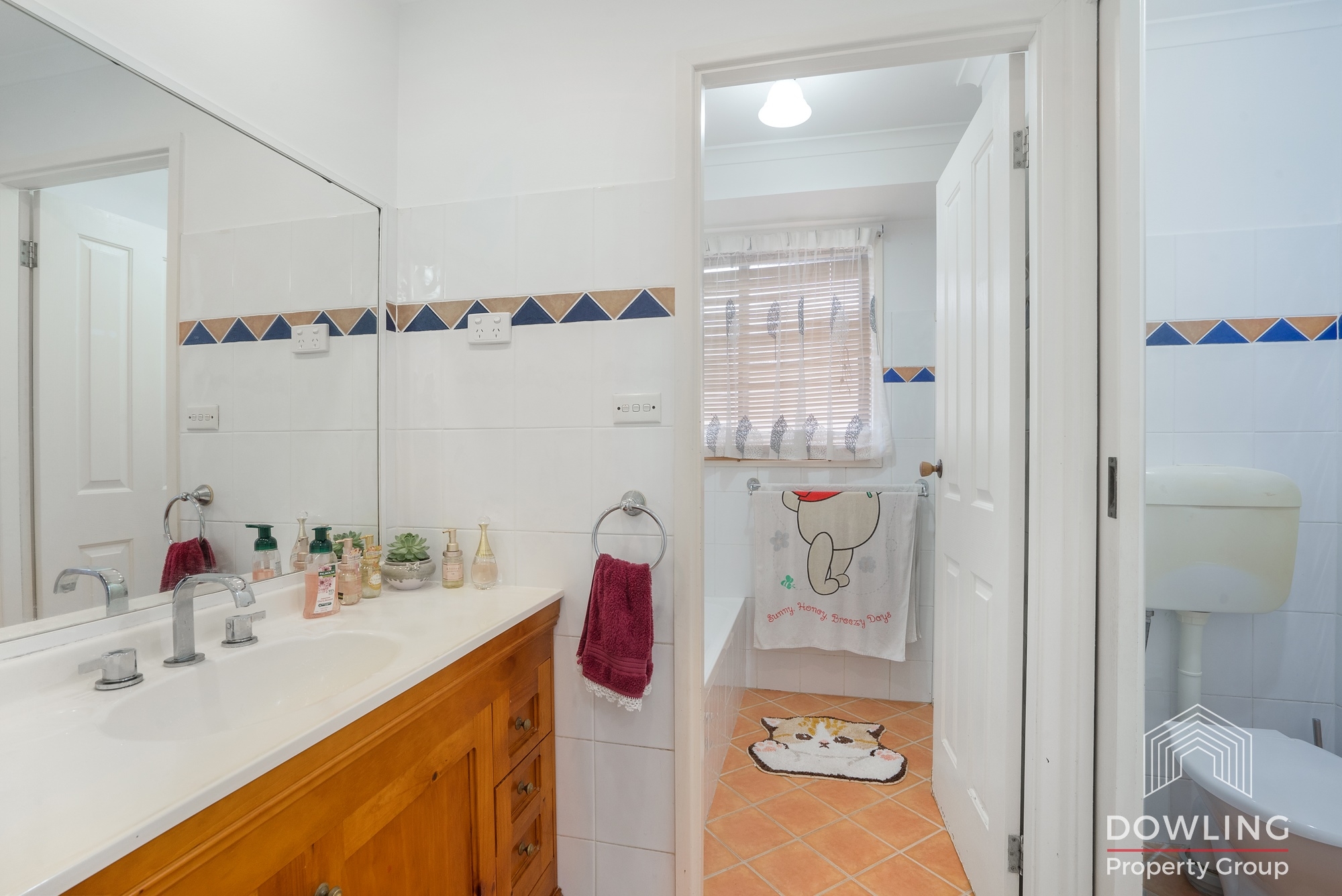All three bedrooms are well equipped with air conditioning and robes. The well-designed three-way bathroom features a single-sink vanity, separate shower, and bathtub—ideal for family convenience.
