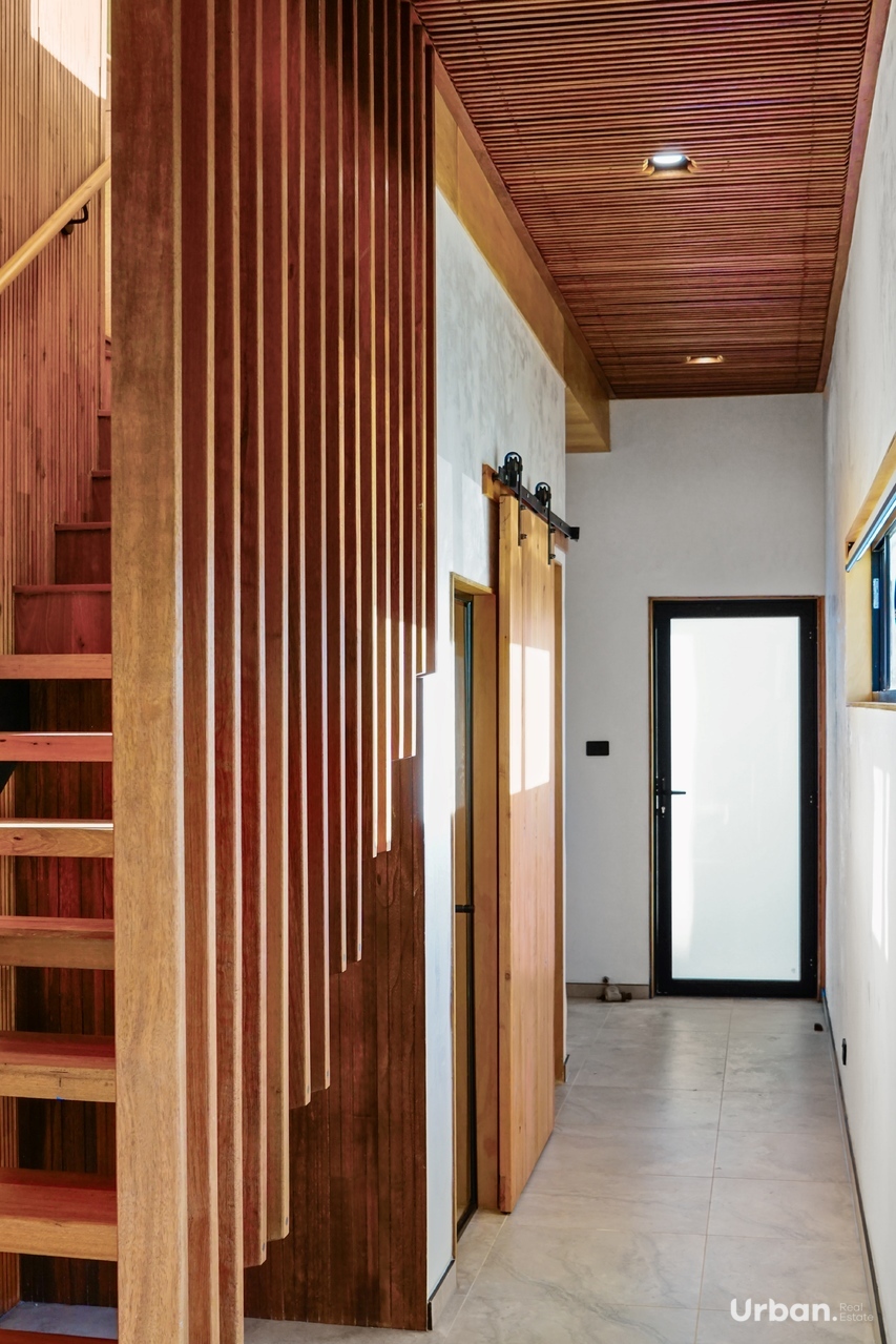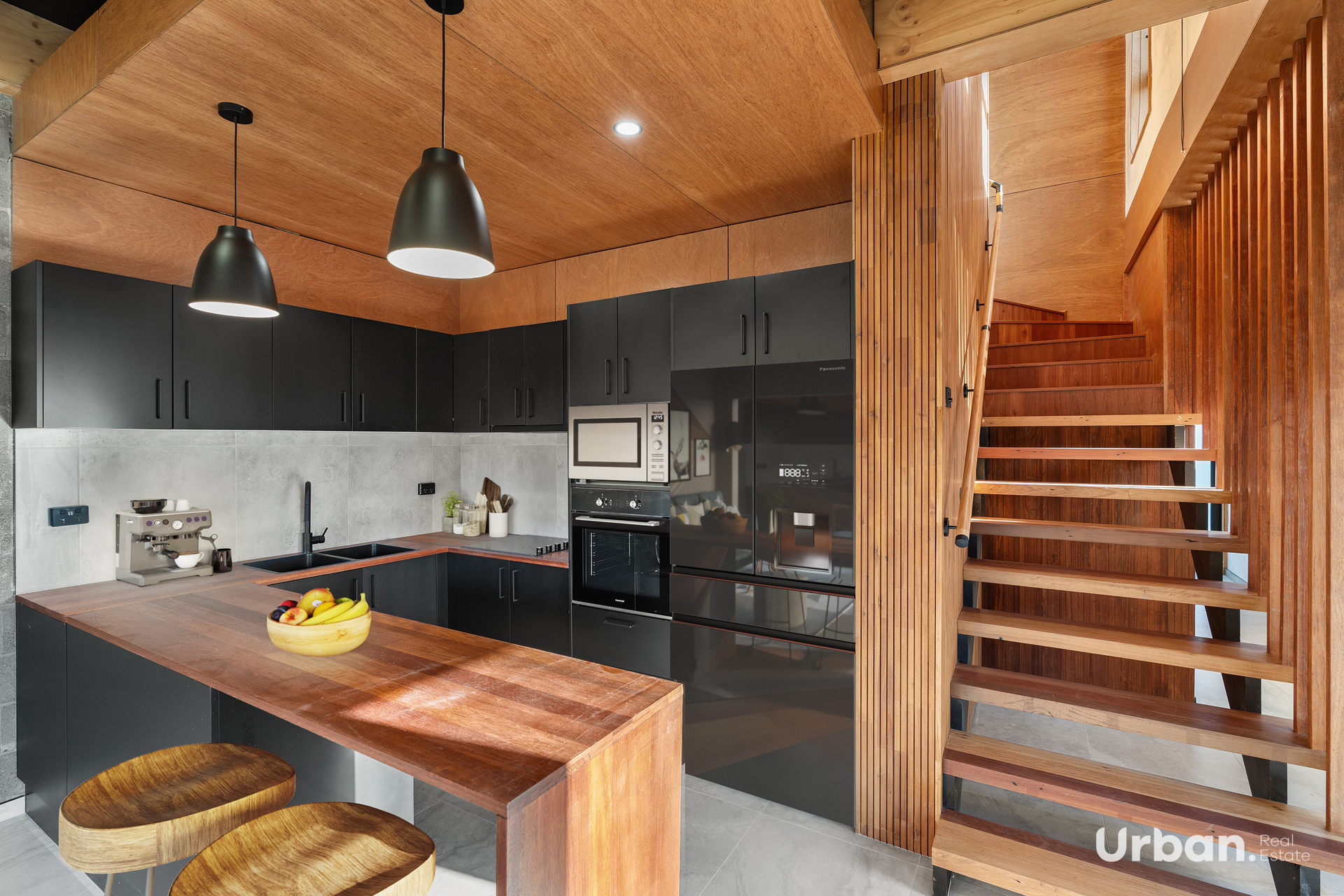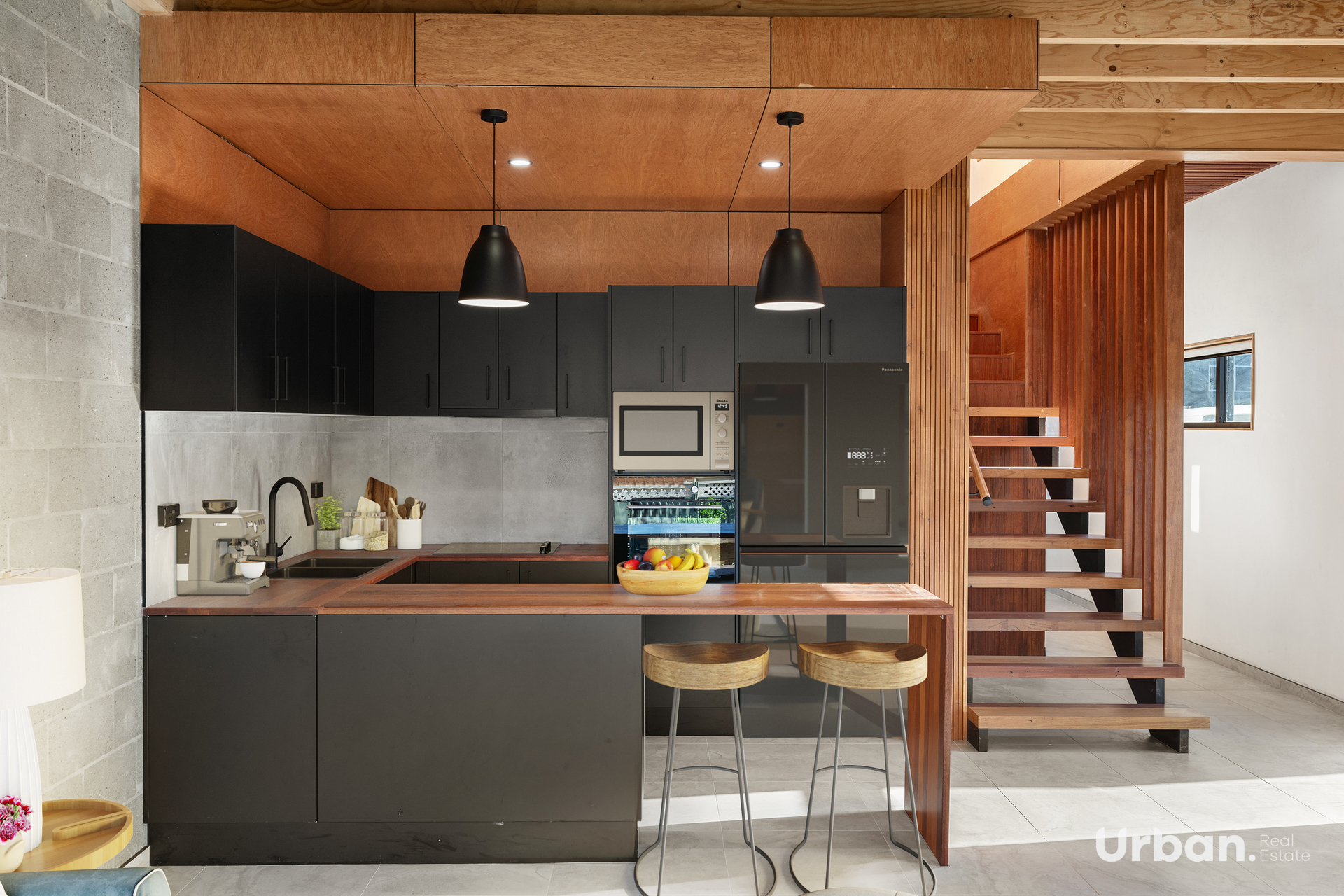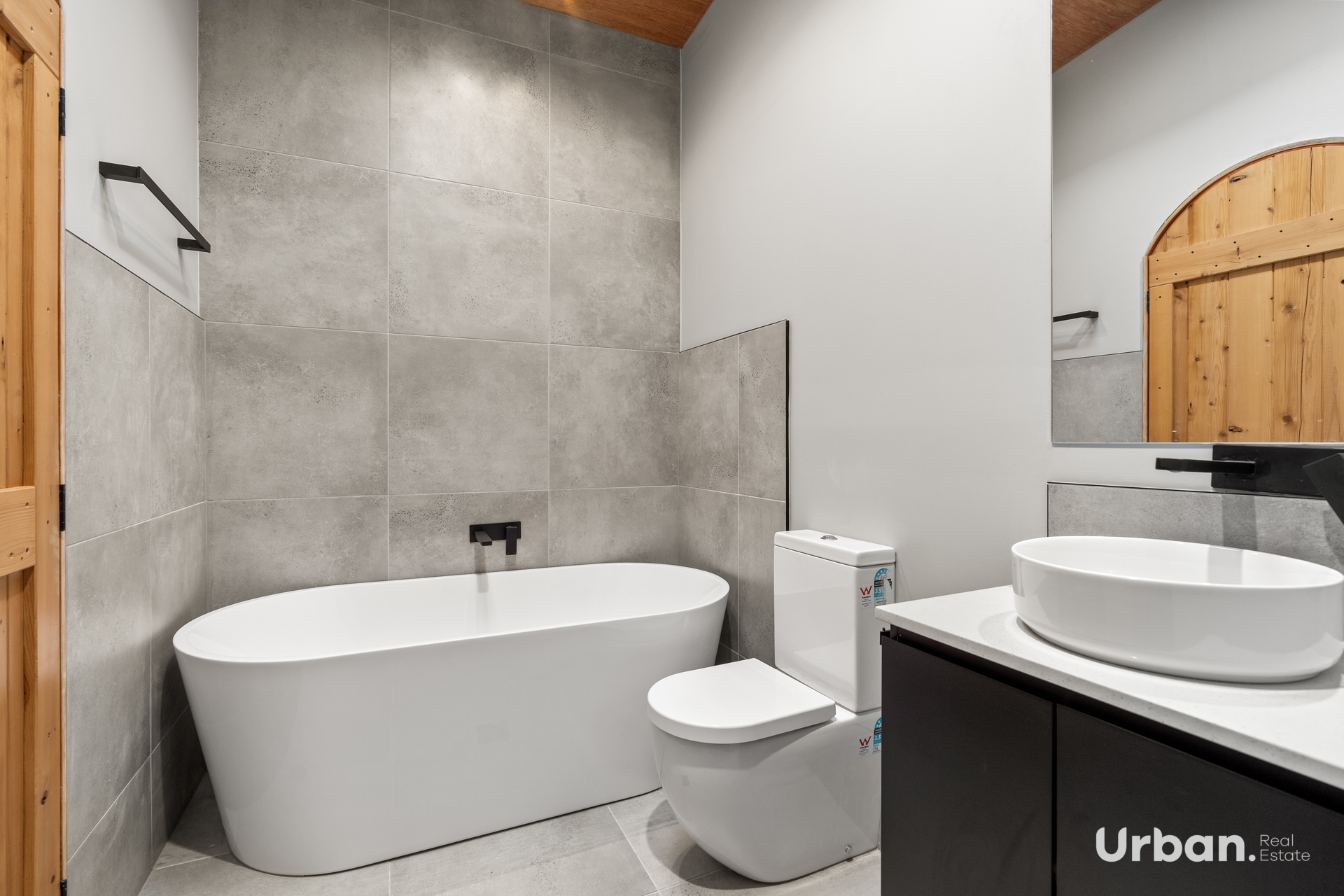 Features: - Eco-friendly construction with superior insulation - Stylish lime/venetian plaster walls downstairs & plywood finishes upstairs - Soaring raked ceilings reaching 3.6m high - Main bathroom with provisions for a UV sauna - Convenient third toilet/powder room downstairs - Single garage and rear courtyard